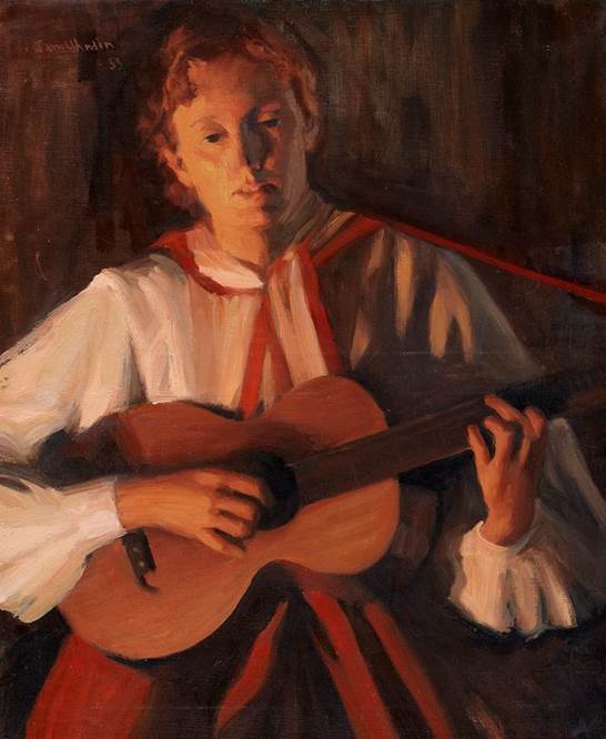 talang uppmärksamhet. Hans oljemålning ”En rolig visa” fick hedersomnämnande på
