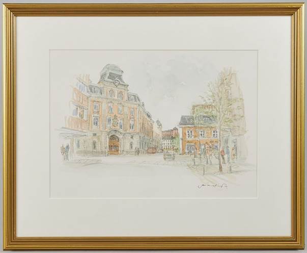 Färglitografier, samtliga inramade med passepartout